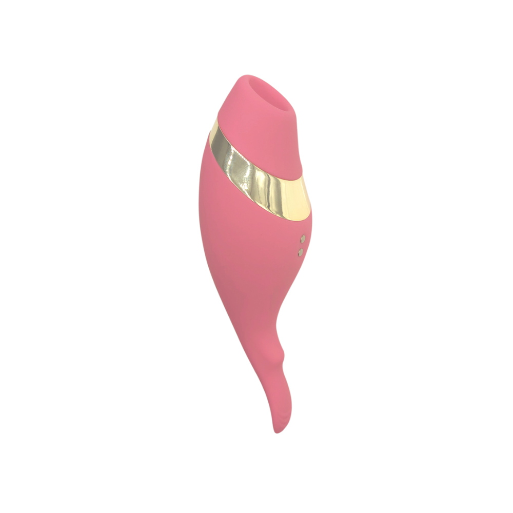 Meet your match with The Adventurer, an exclusive invitation to pleasure. This expertly crafted accessory allows you to explore new dimensions of desire with different types of clitoral stimulation. Set in premium silicone, the gold accent adds a luxe touch while the rounded shape fits perfectly in hand. Let the textured end tantalize with multiple vibration speeds and patterns or fit the accessory's opening around the clitoris for air pressure that takes your breath away. Rechargeable and Shower Friendly, do not submerge.
