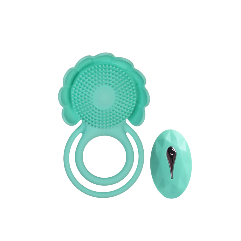 Spring Fling, a vibrating c-ring and remote set made for two. Slip one flexible silicone ring over the shaft and the other over the testicles to add pleasurable pressure to your partner’s experience, then angle the multi-textured surface towards your vulva. Dozens of nubs and petals create multiple textures and sensations that tease not only the clitoris but all the pleasure-rich nerve endings around it. And don’t forget the remote! No need to pause to adjust tempo, just reach for the remote and switch between 7 speeds and patterns with the touch of a button.